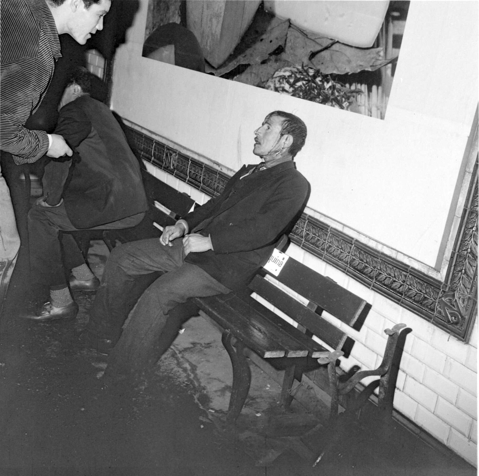Homme blessé assis métro Solférino, Elie Kagan, 17 octobre 1961
